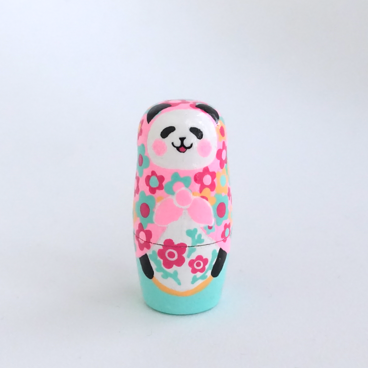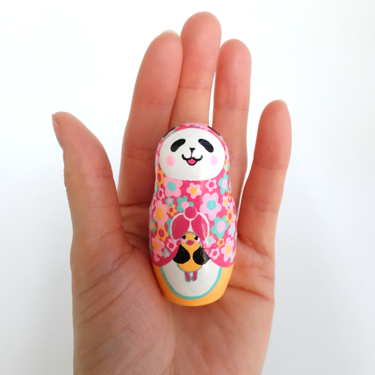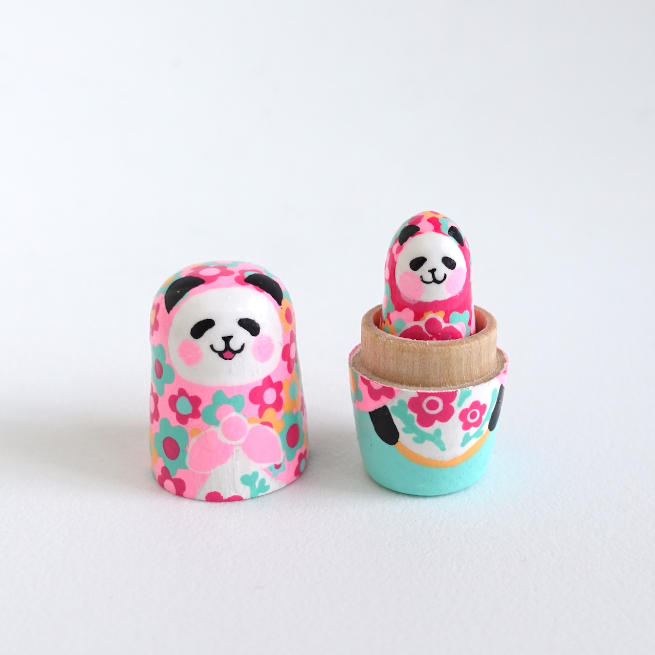 カラフル花柄のパンダマトリョーシカ3人組