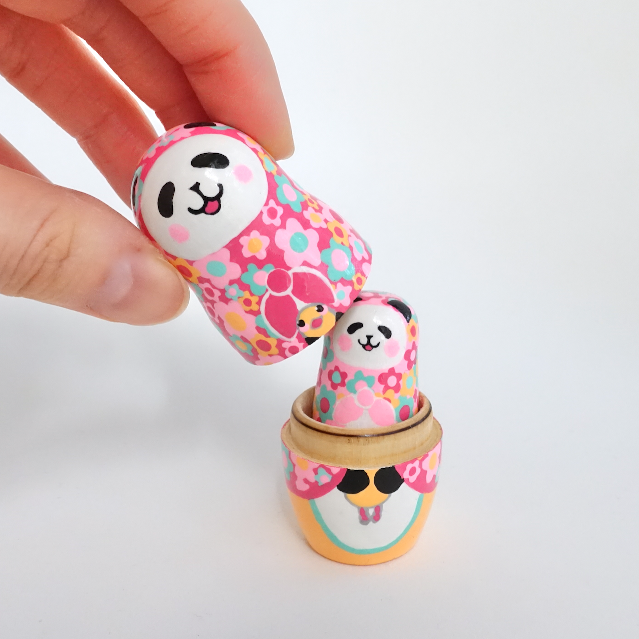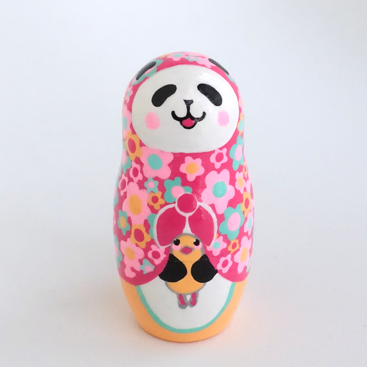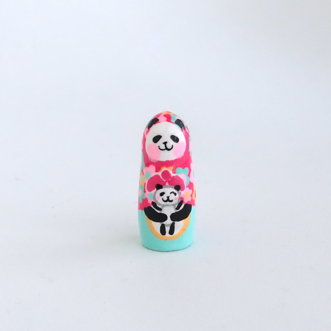 カラフル花柄のパンダマトリョーシカ3人組