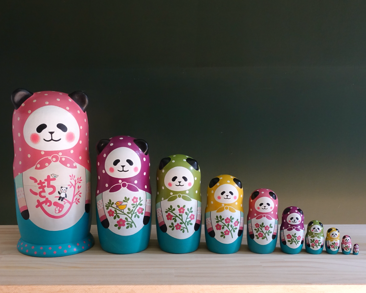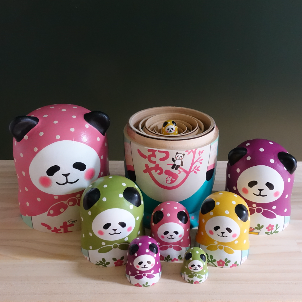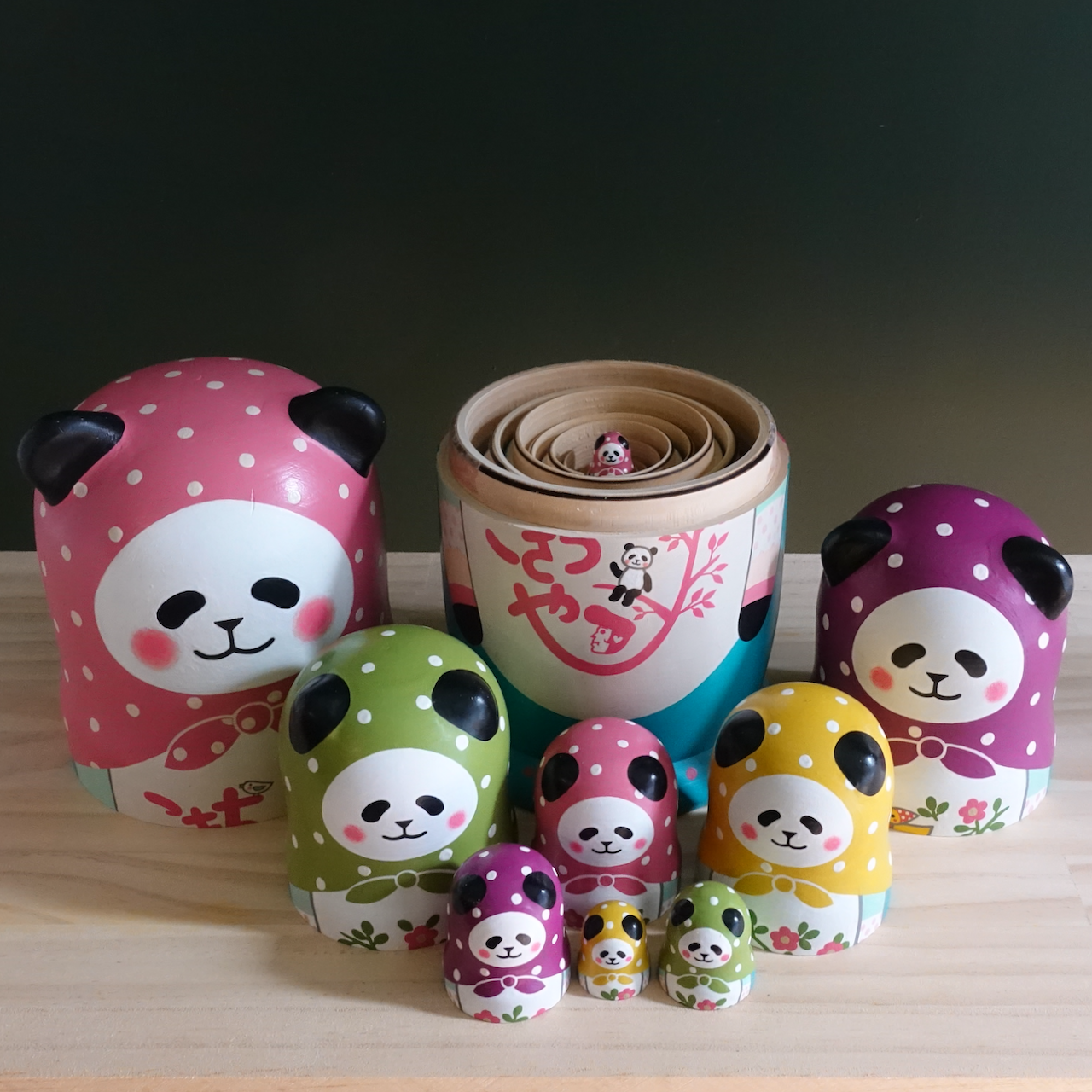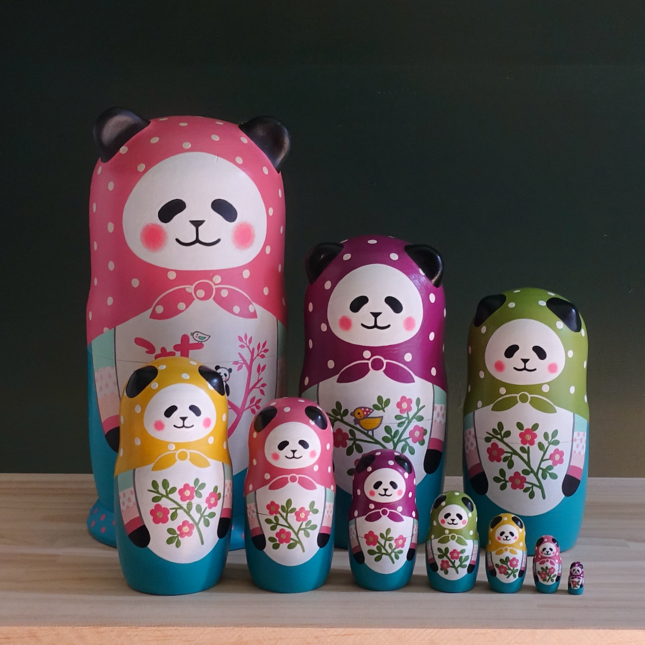 10人組のパンダのマトリョーシカです。
