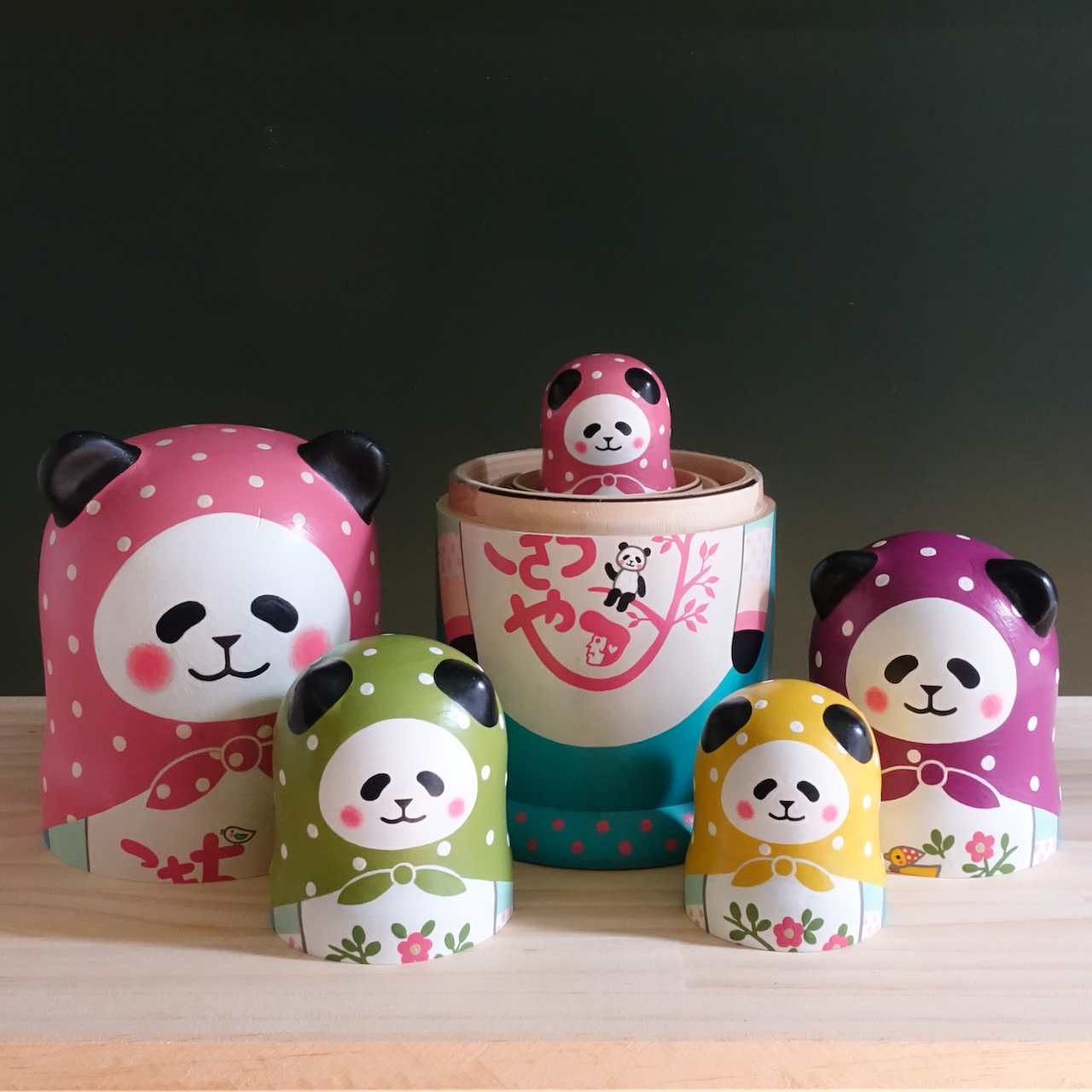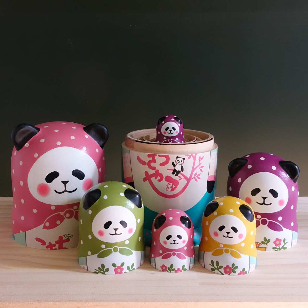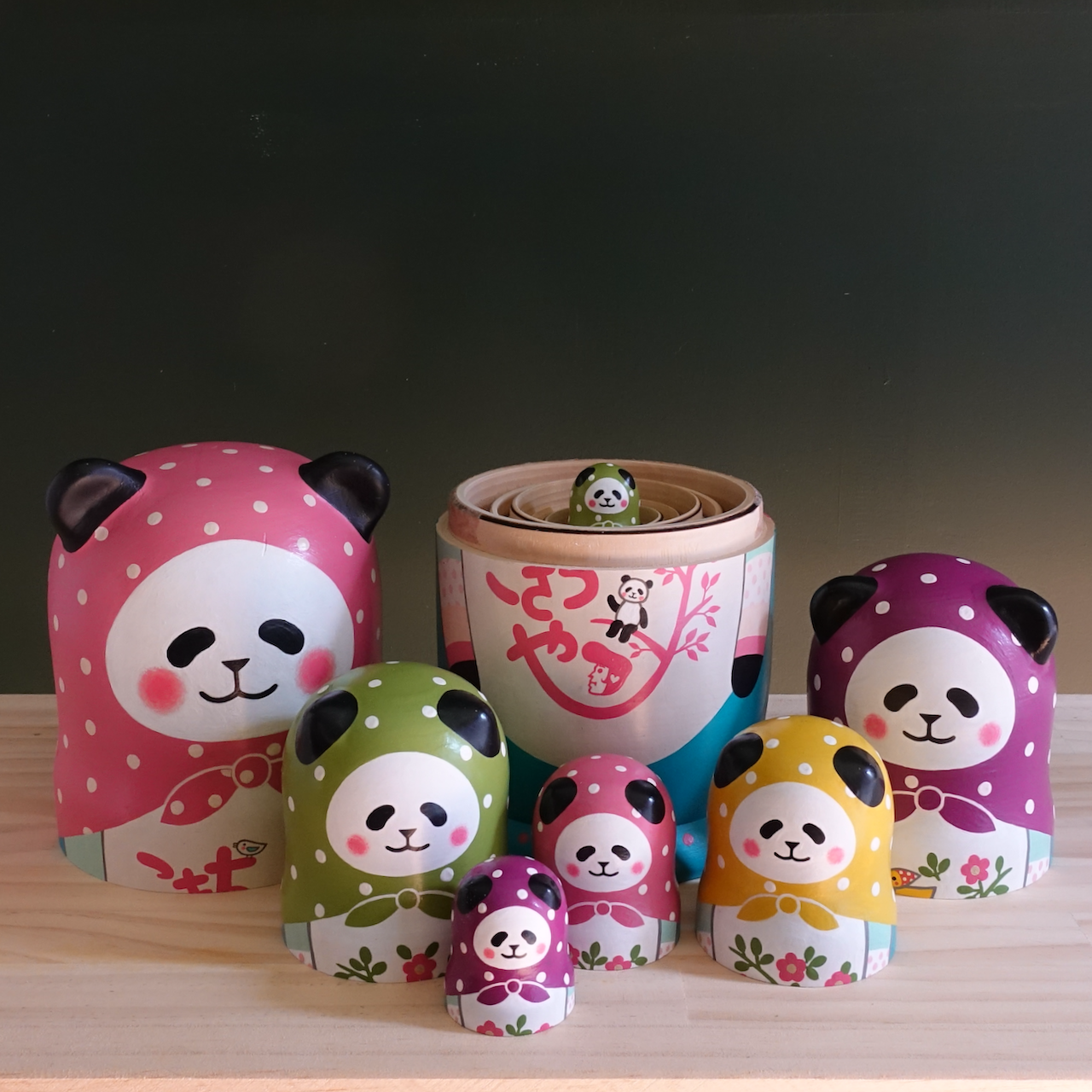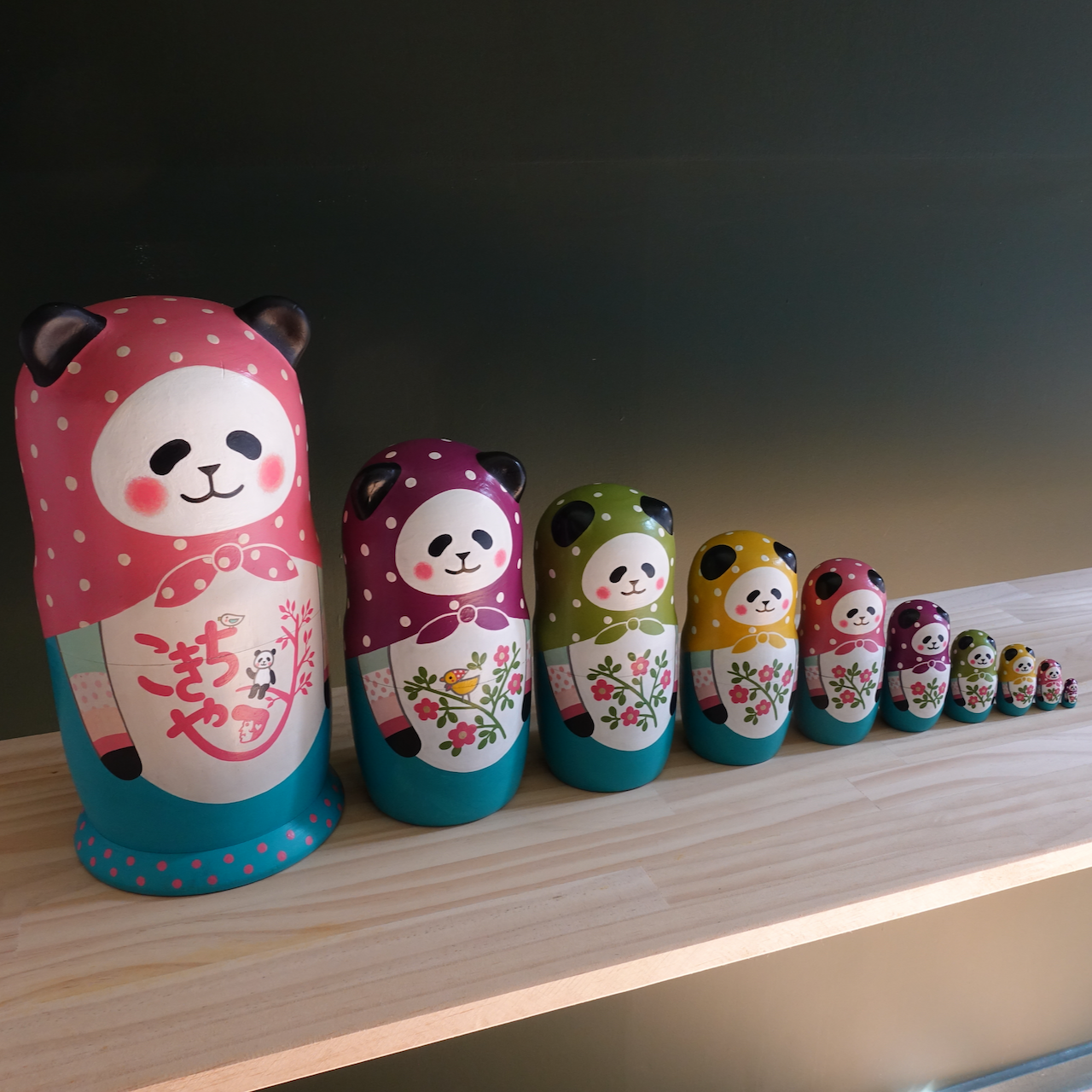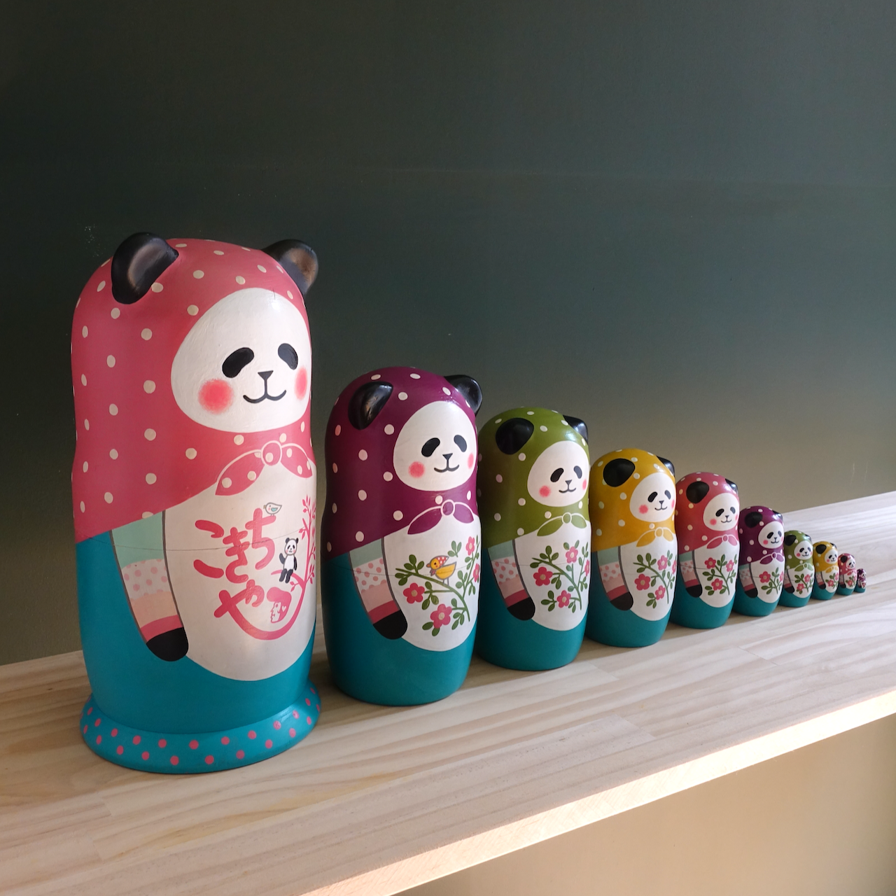 10人組のパンダのマトリョーシカです。