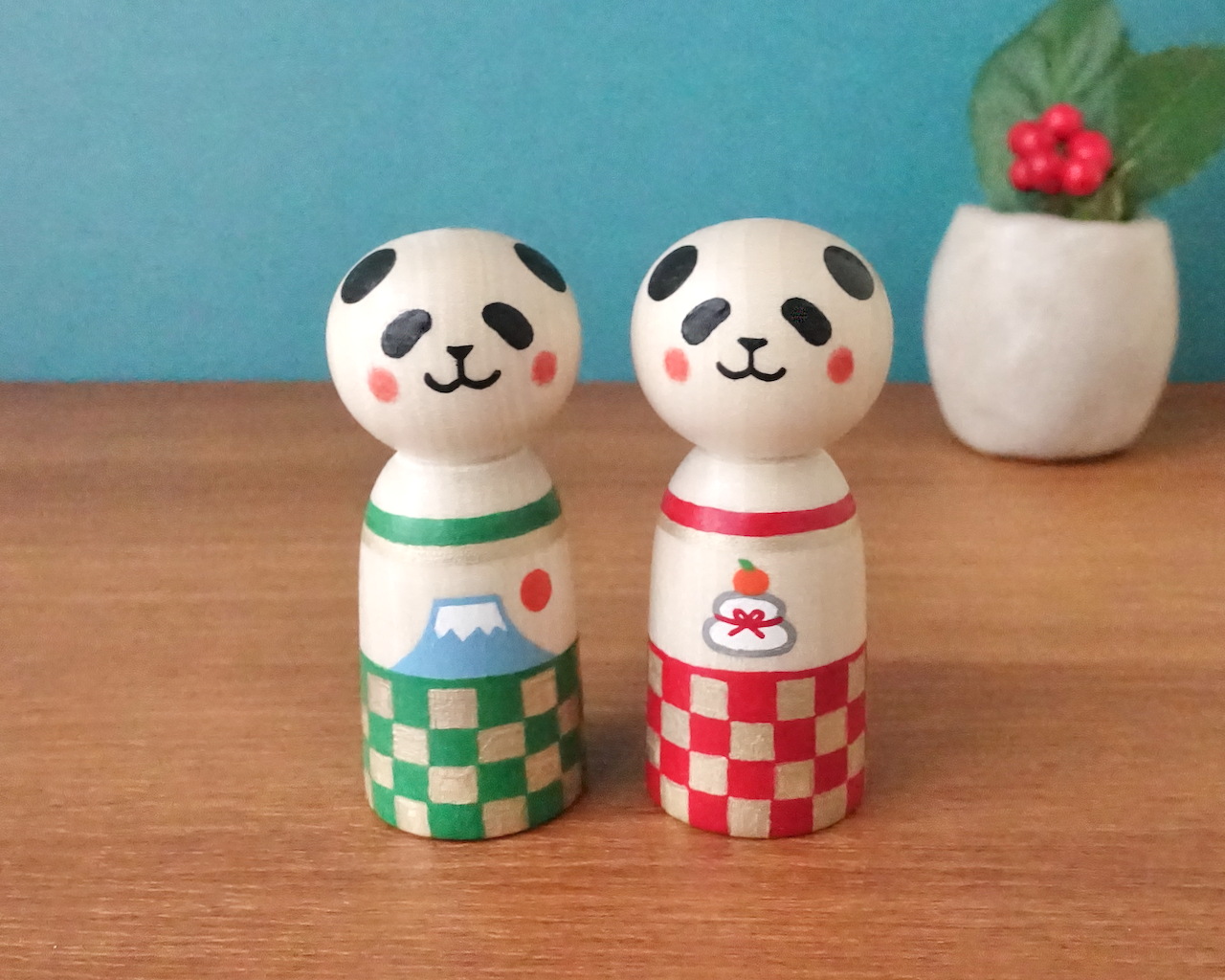 日本の職人さん作のこけし木地に絵付けしました。木肌を活かしたシンプルでポップな絵柄をめざしています。木地の美しさもお楽しみください。