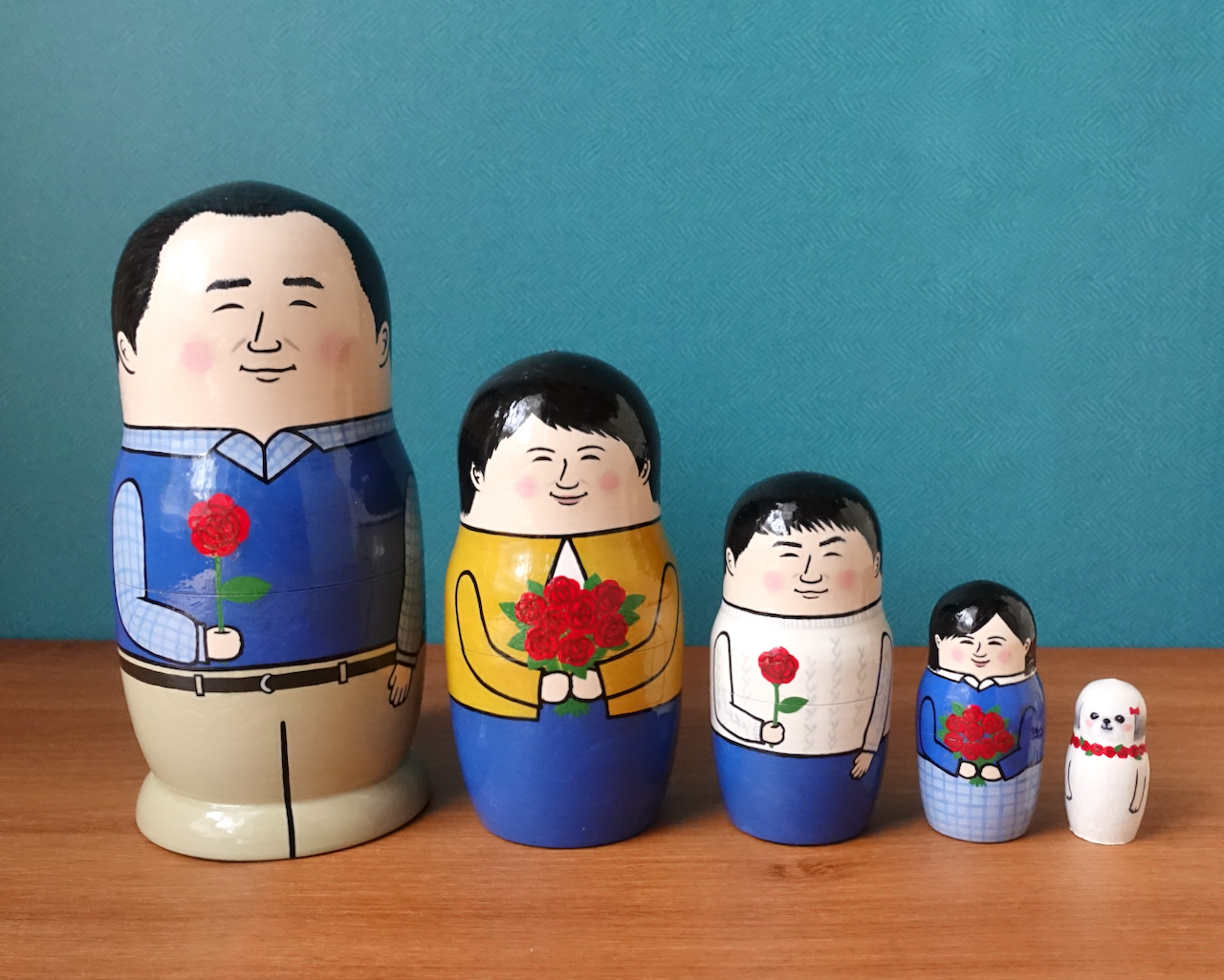 にがおえや干支のマトリョーシカやこけし。お祝いや記念日の贈り物にオーダーをいただき、心を込めて制作しました。