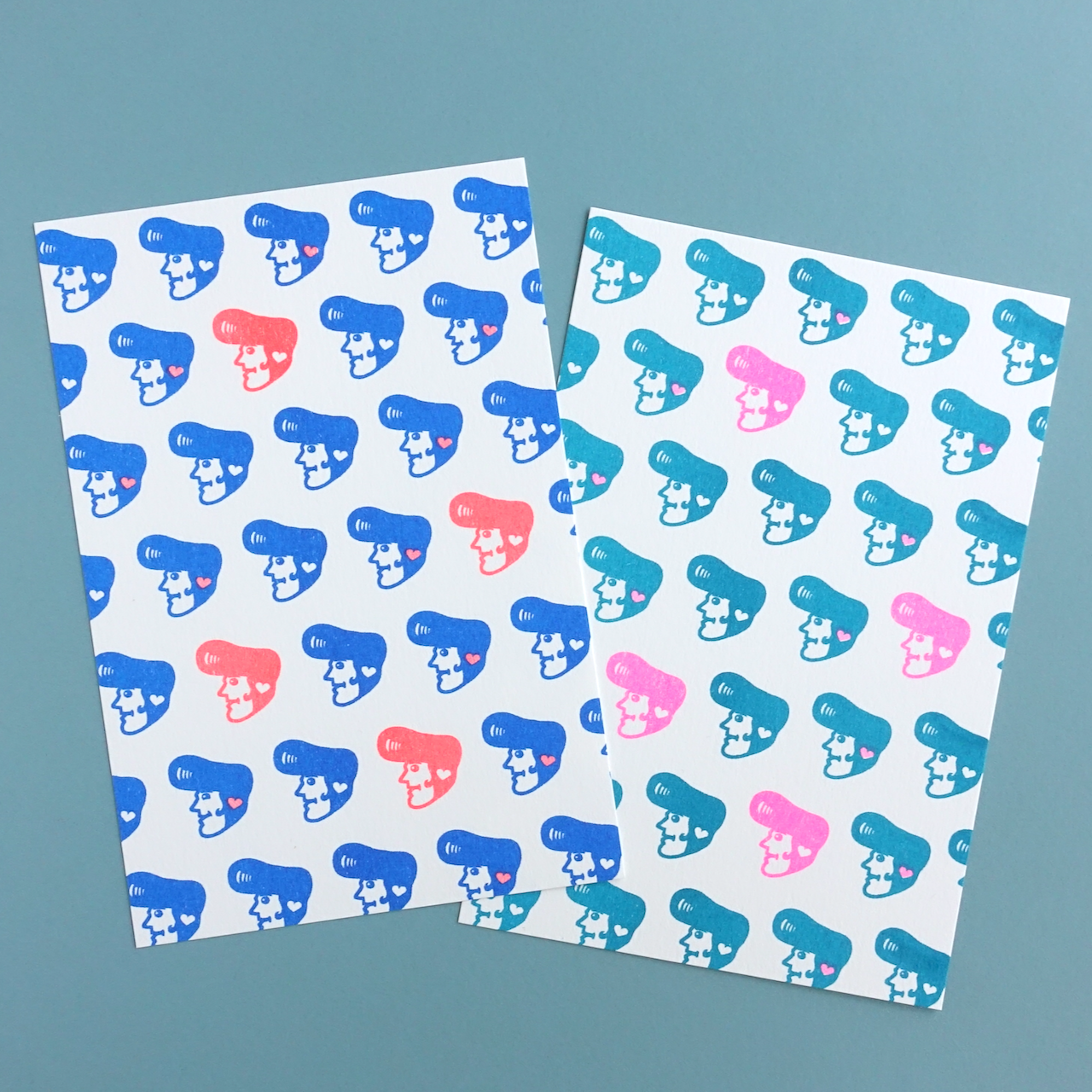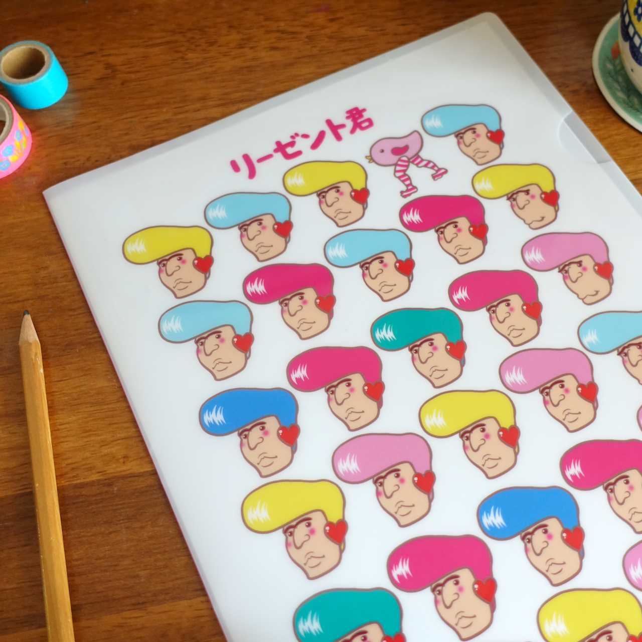 もう一方の面には、カラフルなリーゼントが並びます。硬派な髪型だけど、やさしい表情のリーゼントくん。耳のハートがチャームポイントです。