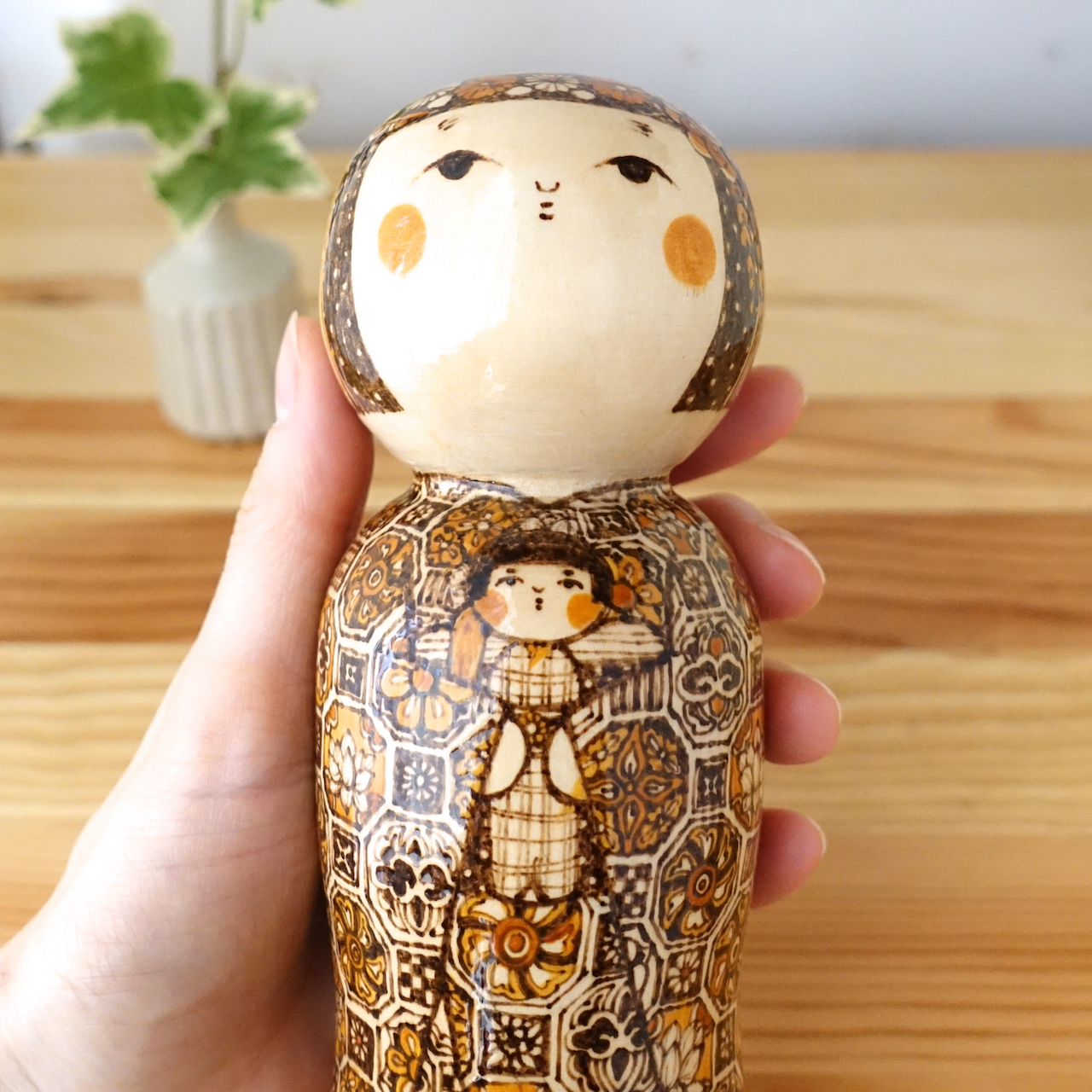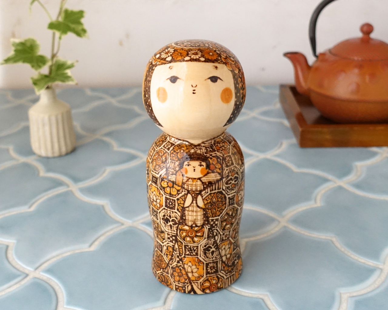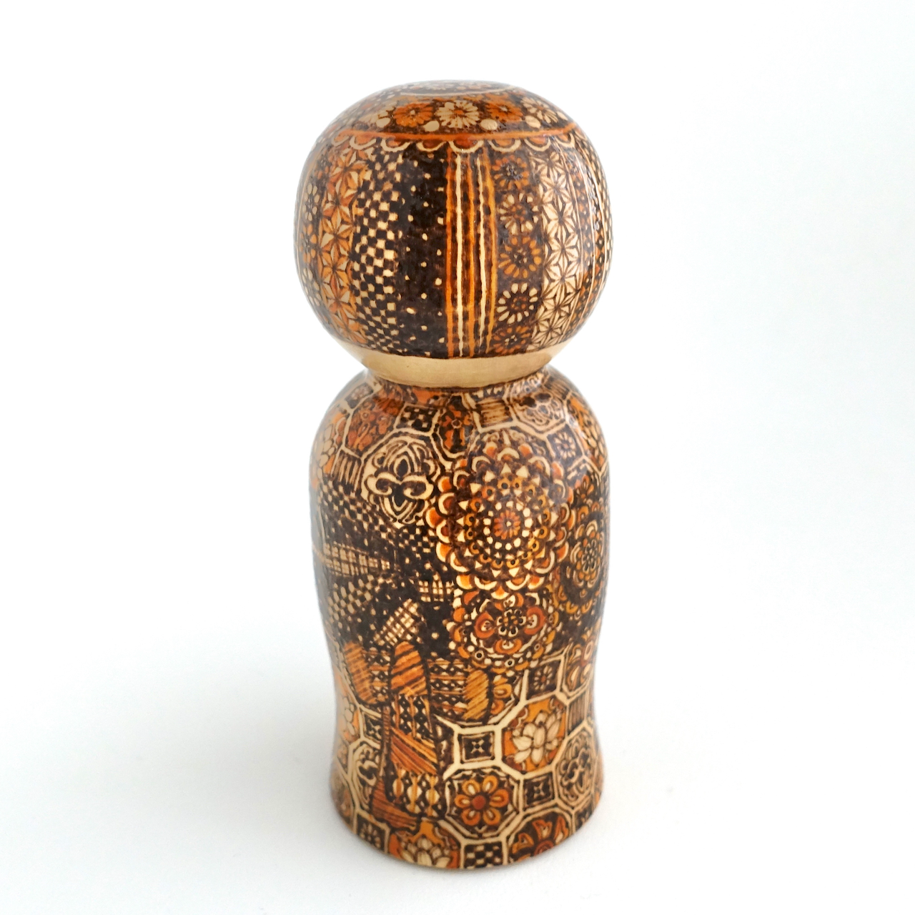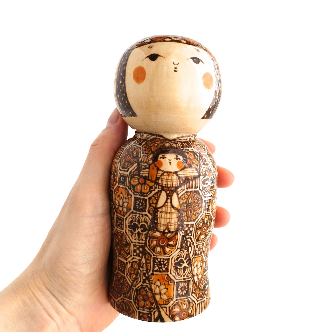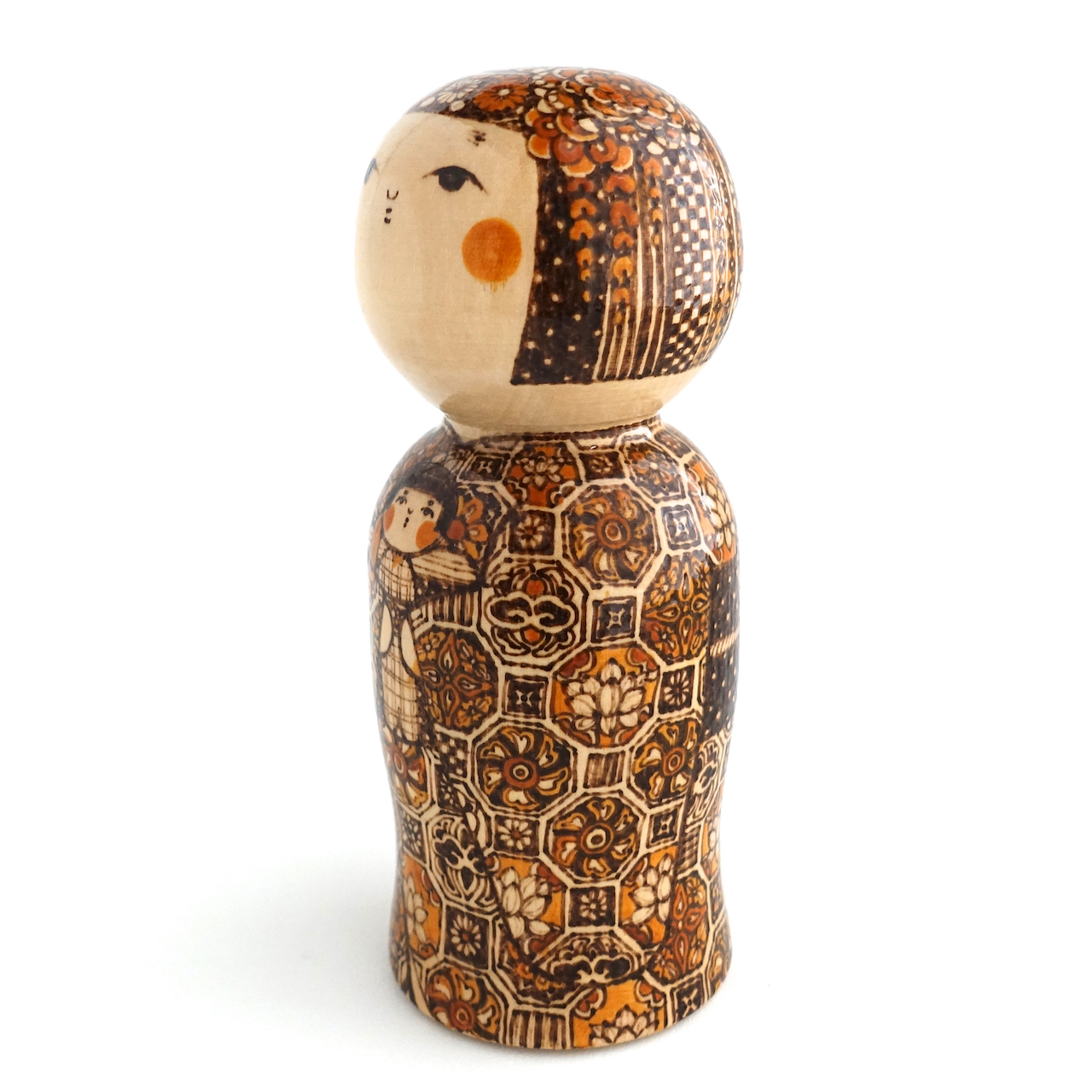 伝統文様を描いたオリジナルこけしです。