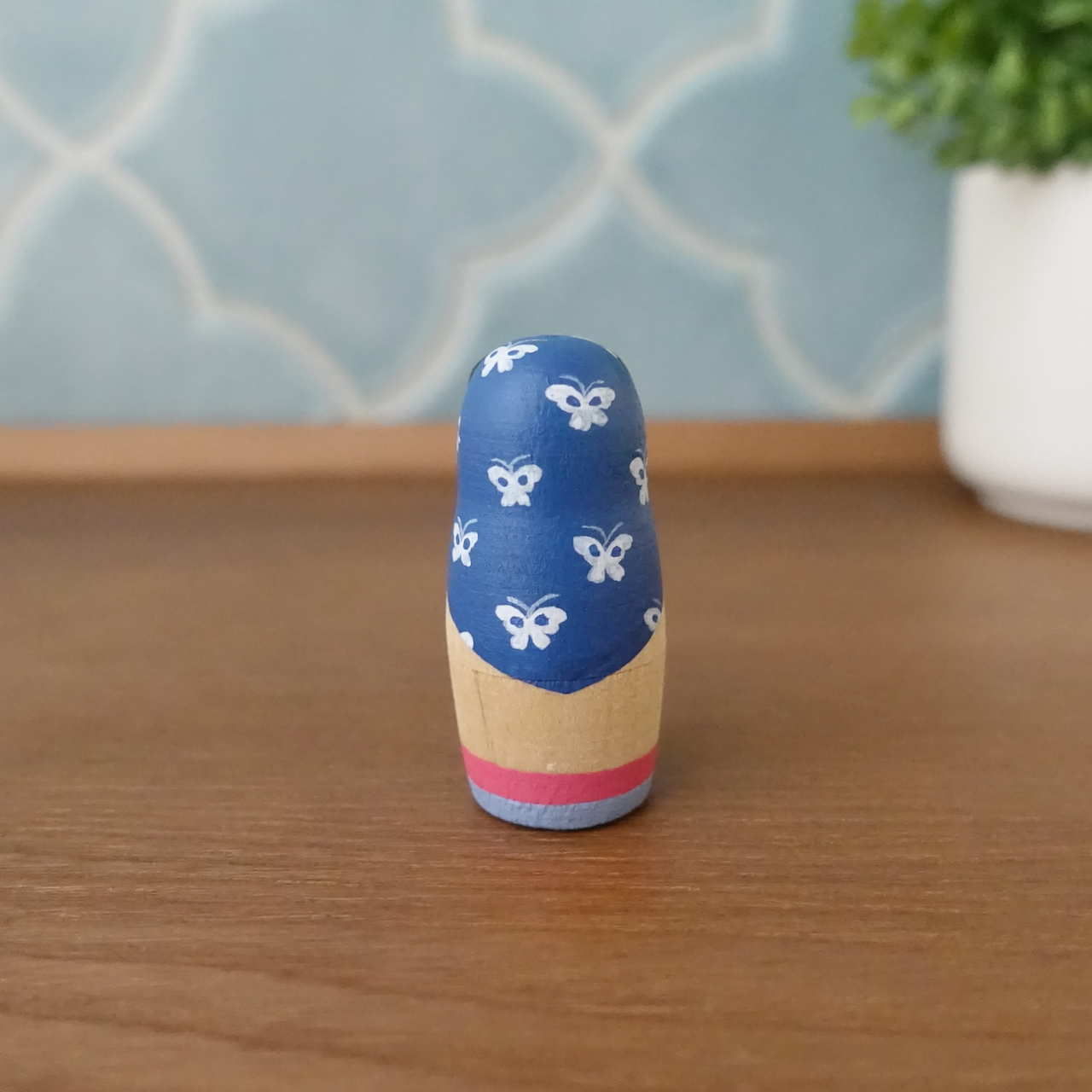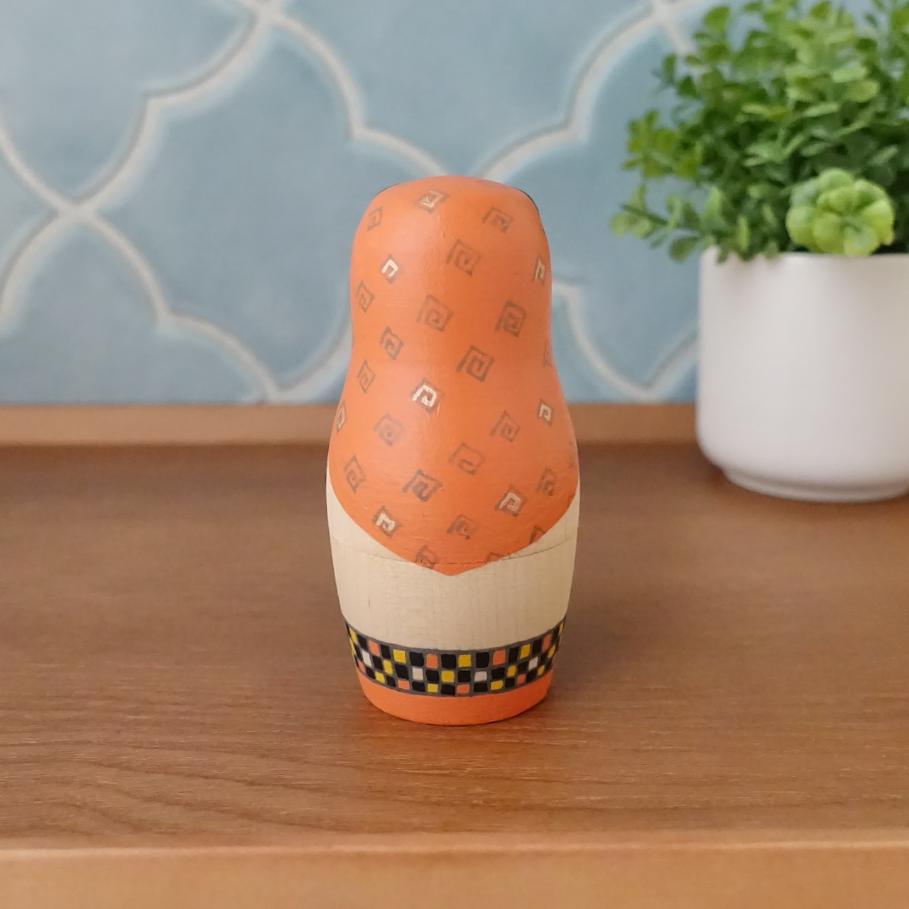 【素材】マトリョーシカ木地(ロシア製、菩提樹)、石粉粘土、アクリル絵の具、つや消しニス